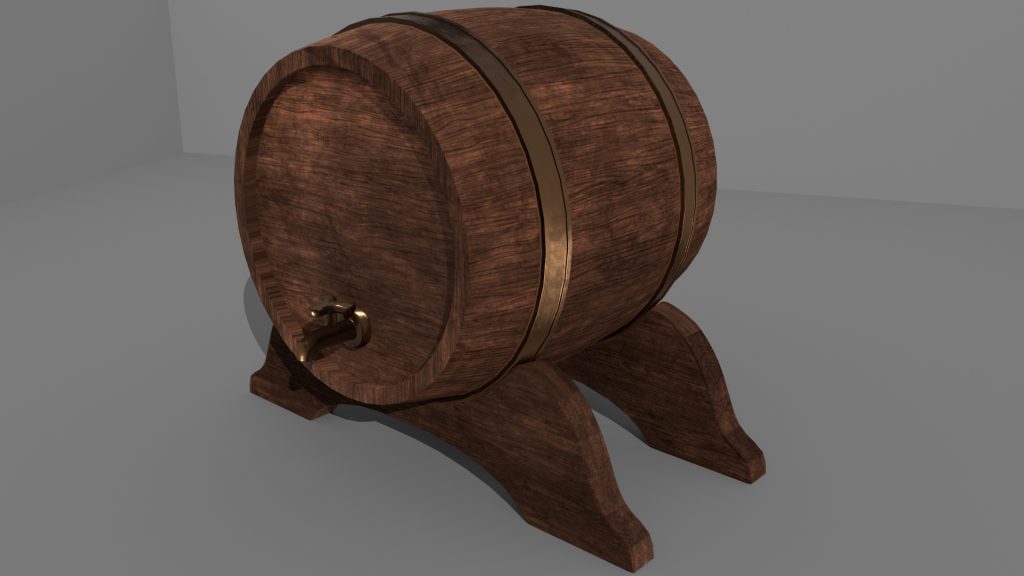 The Tavern is decorated with many items, including burlap sacks and wooden barrels. One barrel is equipped with a pouring spout and placed on the bar for patrons to refill their drinks.