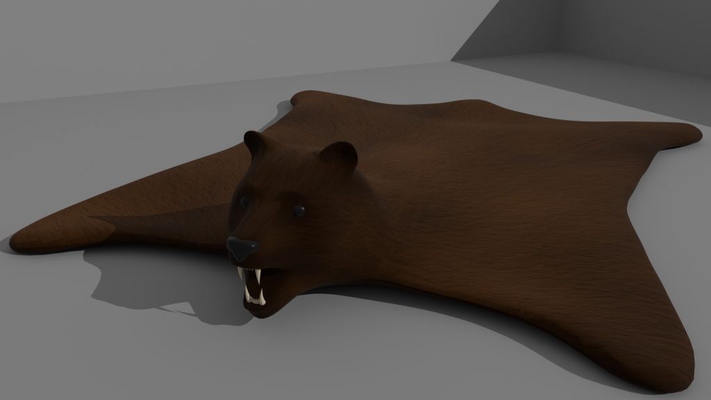 This is one item that I’m really unhappy with. I’m proud of the sculpting of the face, but softening the model caused strange topography (is this the right word?) that I was unable to fix. The fur texture also didn’t come out as well as I had sculpted it in Substance Painter. I would’ve liked to use an AI texture for the fur but I haven’t yet learned how to use these.