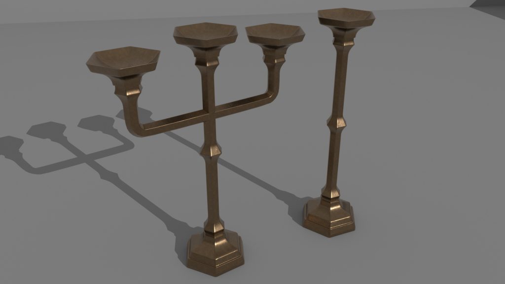 Like the fire in the Fireplace, I intended for the candles also to have flames, which I modeled and spent hours preparing only to have my PC crash every time I tried to render these. I, therefore, removed them and opted for a lighting effect instead.