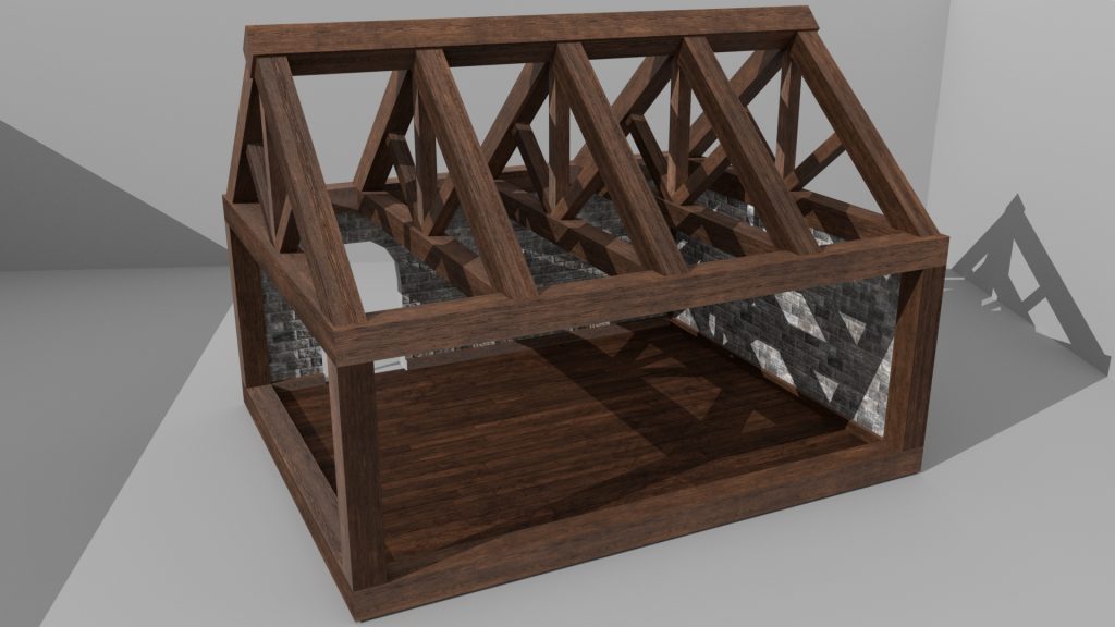 I really like the way the wooden beams turned out, in fact, I think it’s one of my favourite elements of the Tavern. The stone brick walls were initially modelled with individual bricks making up a complex pattern. This was, however, too much for my computer to handle and I ended up having to use a brick texture from the substance share website and then customise it to make my own stone looking bricks.