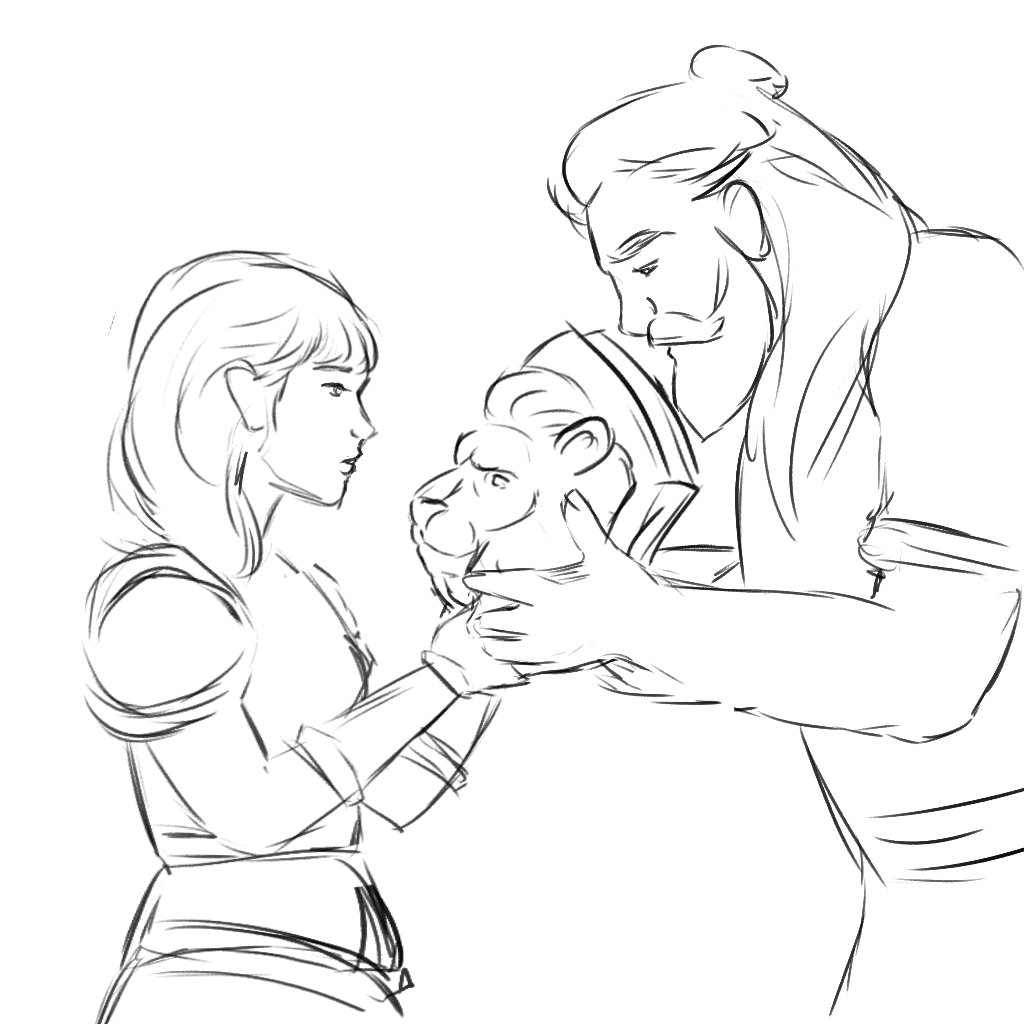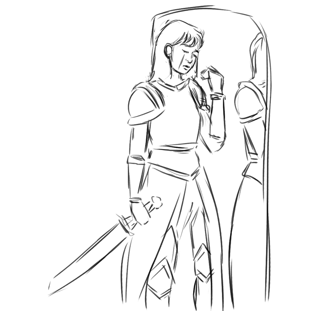 My animation will follow a very short narrative arc as Leona Lionheart talks through her backstory, specifically about the day she left to forsake her name and train to become a Golden Lion. It will begin with the “Setup”, where she talks about how she was inspired to become an adventurer; then there will be a “Conflict” – both internal and external – as her father finds out she’s leaving home; finally, the “resolution” as her father accepts her decision to leave.