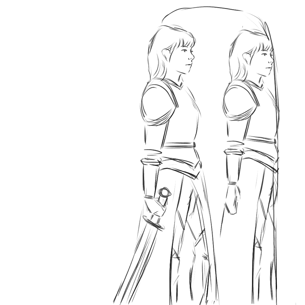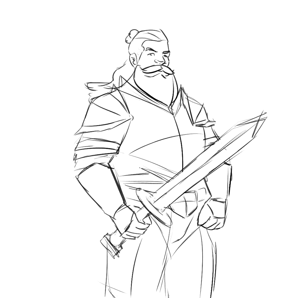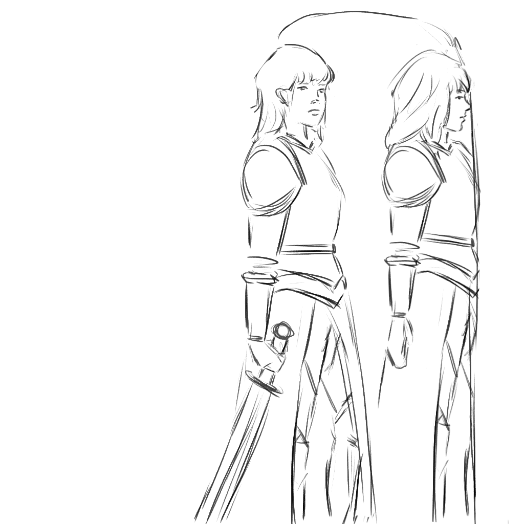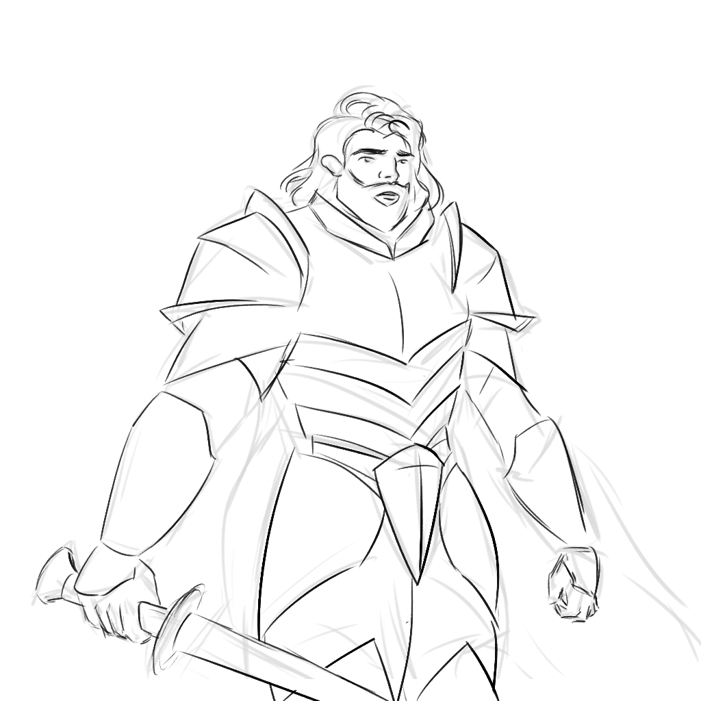 My character design for Leona’s father is unique to this animation, and I feel that the clothing detail shows how much I’ve progressed as an artist since my original design of Leona’s armour. I’ve tried to add enough character design elements to Brynor (Leona’s father) to identify them as related while also giving him elements consistent with his backstory.