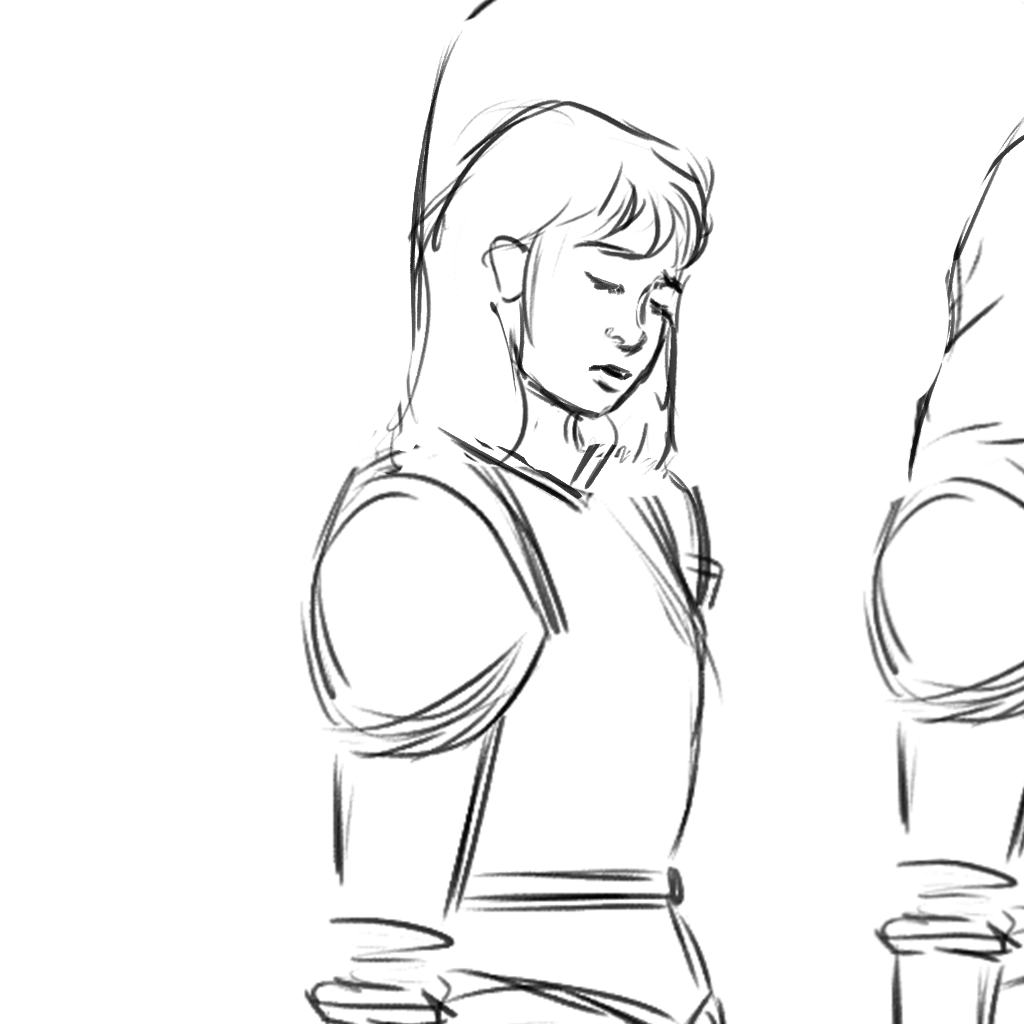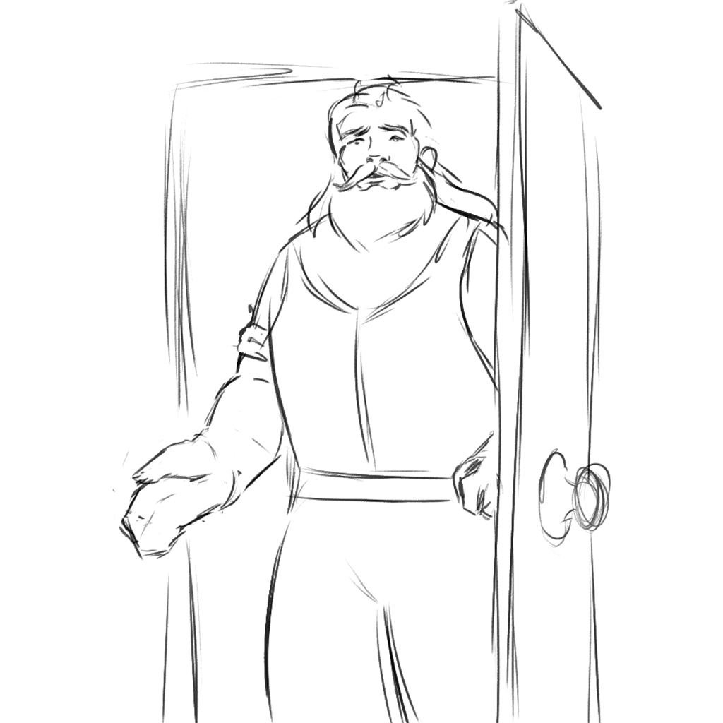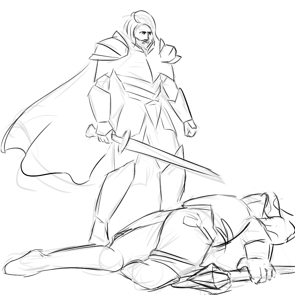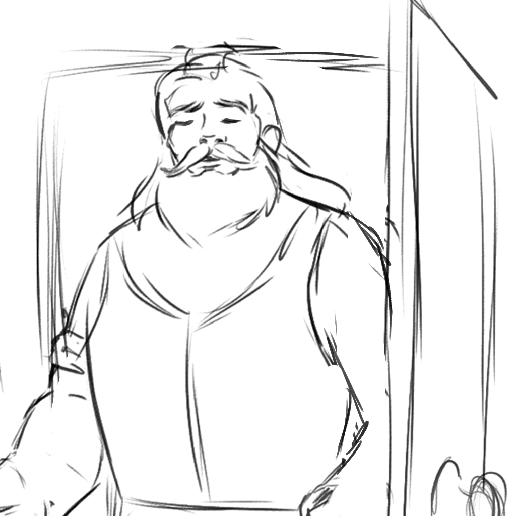 My character design for Leona’s father is unique to this animation, and I feel that the clothing detail shows how much I’ve progressed as an artist since my original design of Leona’s armour. I’ve tried to add enough character design elements to Brynor (Leona’s father) to identify them as related while also giving him elements consistent with his backstory.