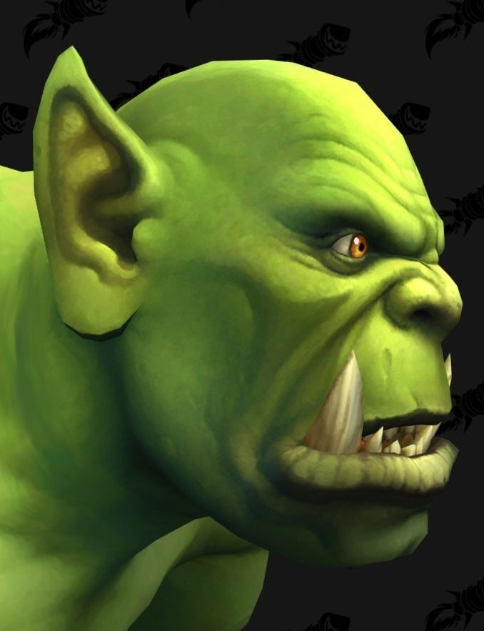 Grom’gar’s thick, brown skin is weathered and scarred, with visible veins and muscles that ripple beneath the surface. His prominent brow and strong jawline give him a fierce and intimidating look, while his thick, black hair is kept in dreadlocks that are adorned with tribal beads and feathers.