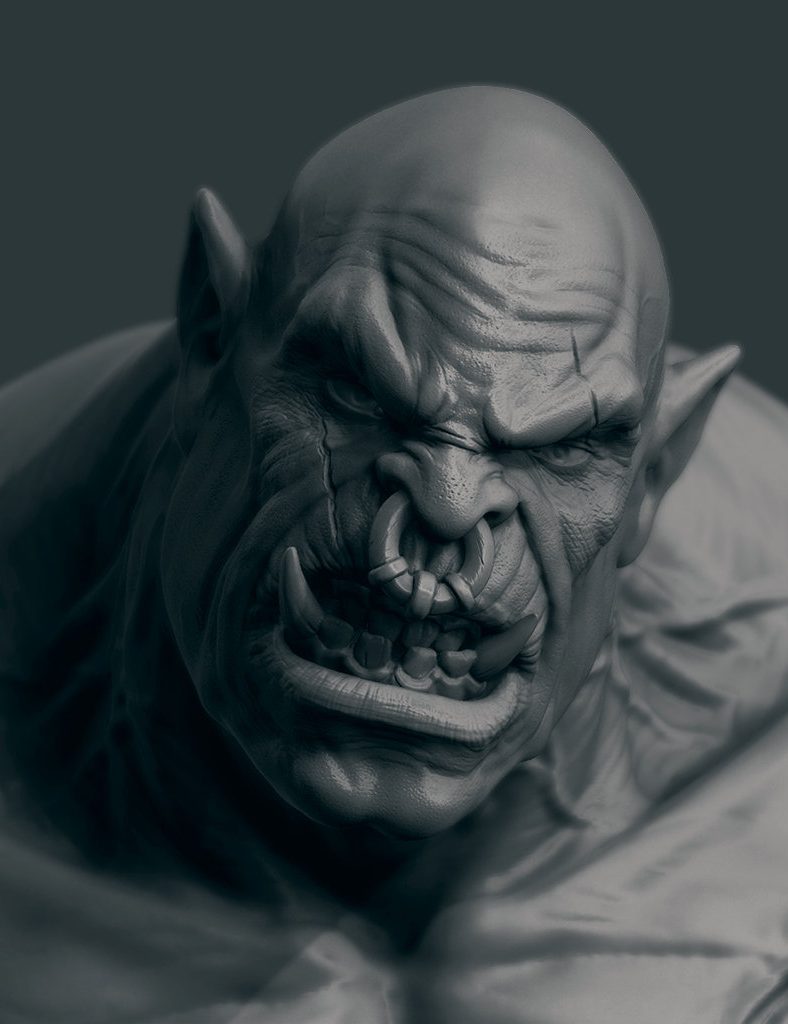 I have chosen to create a male orc character to challenge myself with this piece and learn to produce the rugged masculine forms required to create a convincing Orc. I have a lot of experience sculpting human female characters, and I feel that doing something out of my comfort zone will help to expand my portfolio significantly.