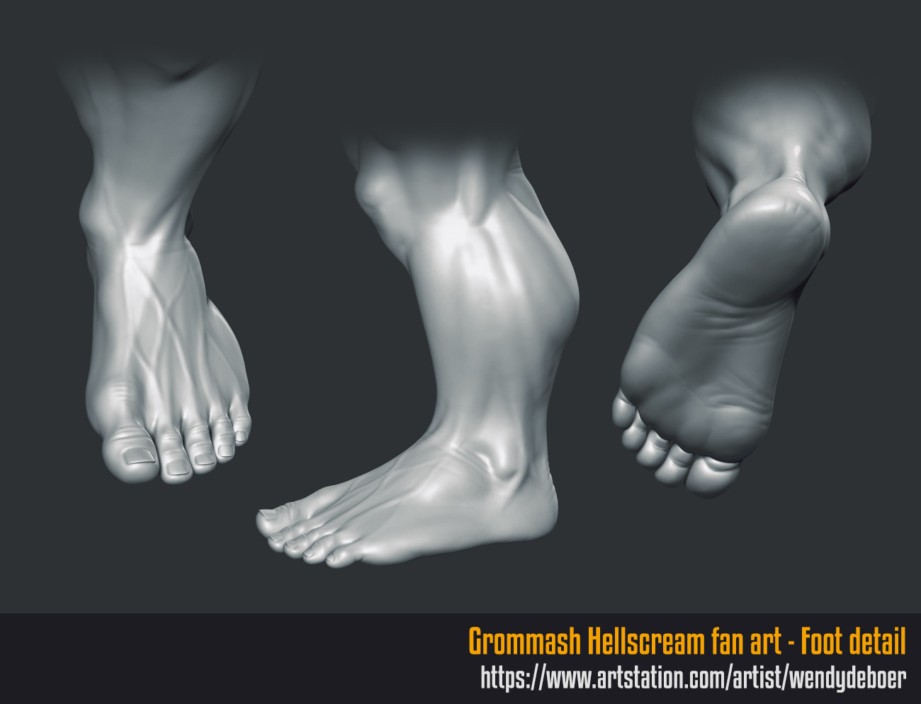 Orc feet must be large enough to support their colossal frame. Although their feet anatomically match a human’s, they are significantly larger to accommodate their bulky physique. They also include the same bulging veins and muscle striations seen in other areas.