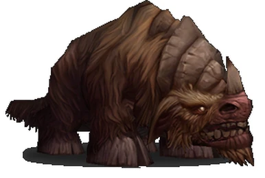 Clefthooves are large, hairy rhinoceros-like beasts native to Draenor in areas frequently hunted by the Frostwolf tribe. They have thick, valuable leather hide, typically used for armour, bags, and belts. “Large enough to quake the ground, covered with a thick valuable pelt, and armed with enormous tusks, these gigantic beasts are a hunter’s most treasured prize and worst nightmare rolled into one. The meat of a single adult clefthoof can feed an orc clan for days, but their inclination to travel in large packs makes them dangerous prey – beware their devastating headbutt or swiping attacks with their formidable tusks.” (Wowpedia, Clefthoof)
