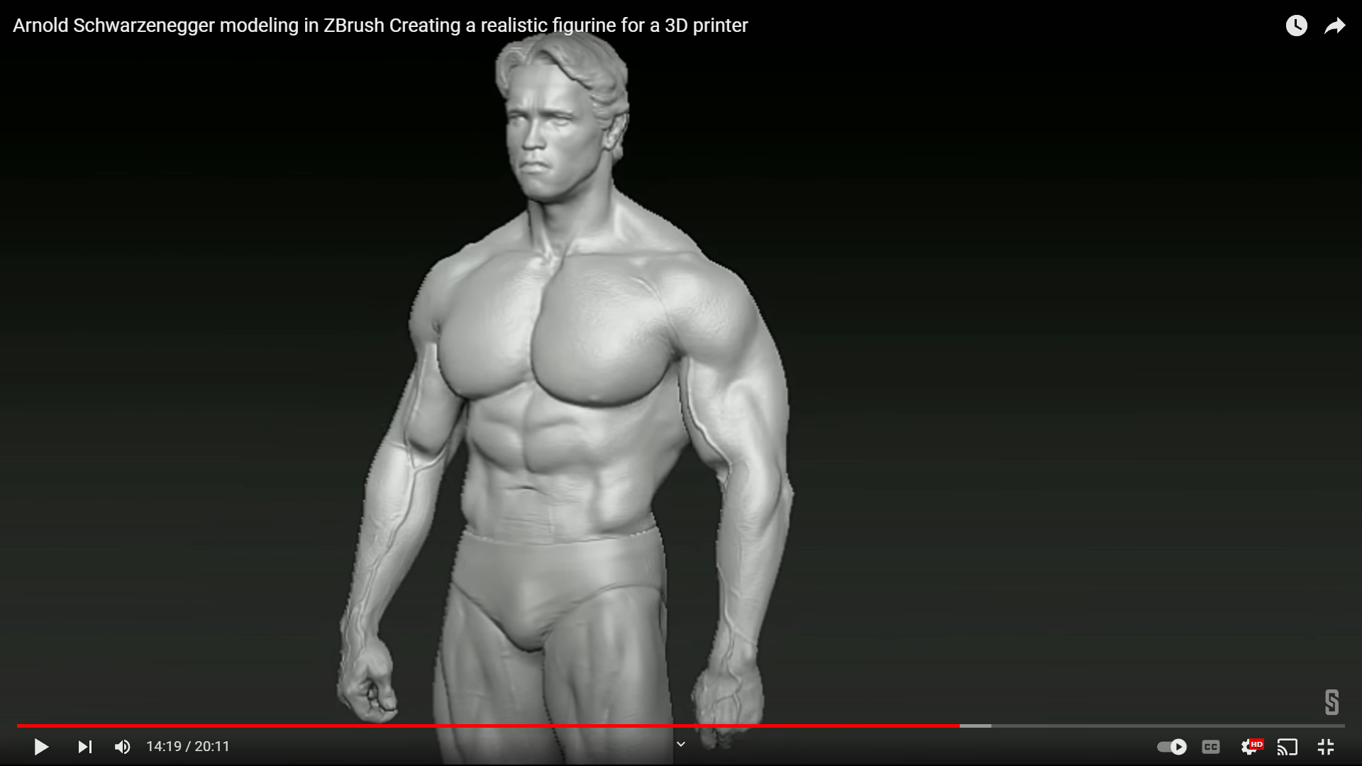 (2022) Arnold Schwarzenegger modeling in ZBrush Creating a realistic figurine for a 3D printer. Stecca. Available at: https://www.youtube.com/watch?v=0aBaF6lDQGI.