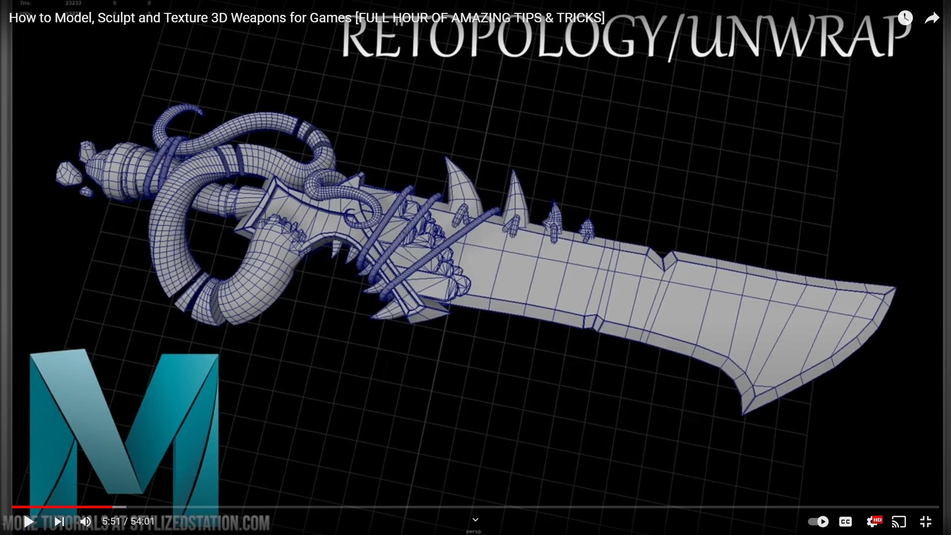 (2020) How to Model, Sculpt and Texture 3D Weapons for Games [FULL HOUR OF AMAZING TIPS & TRICKS]. Stylized Station. Available at: https://www.youtube.com/watch?v=G4xTKnBsWro.