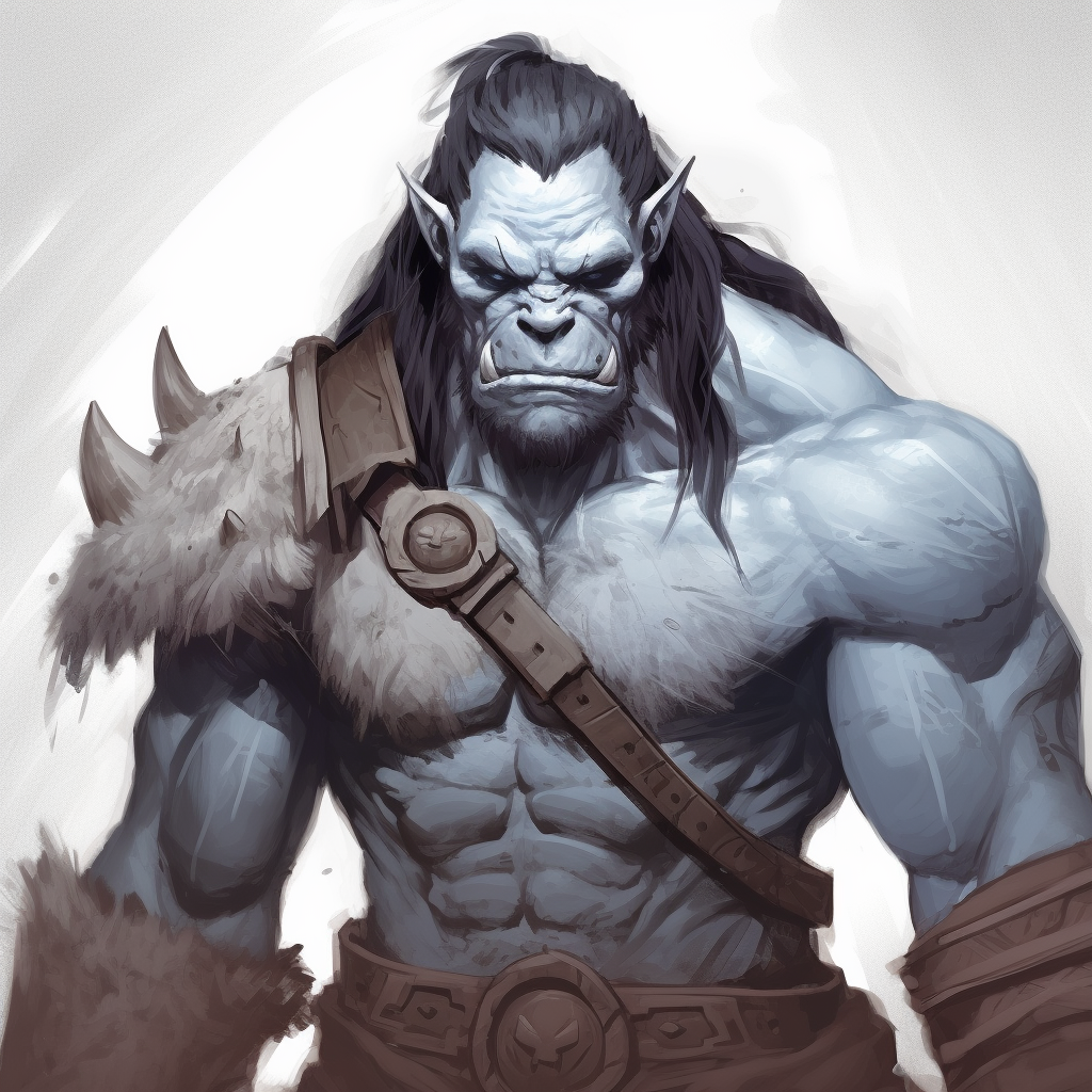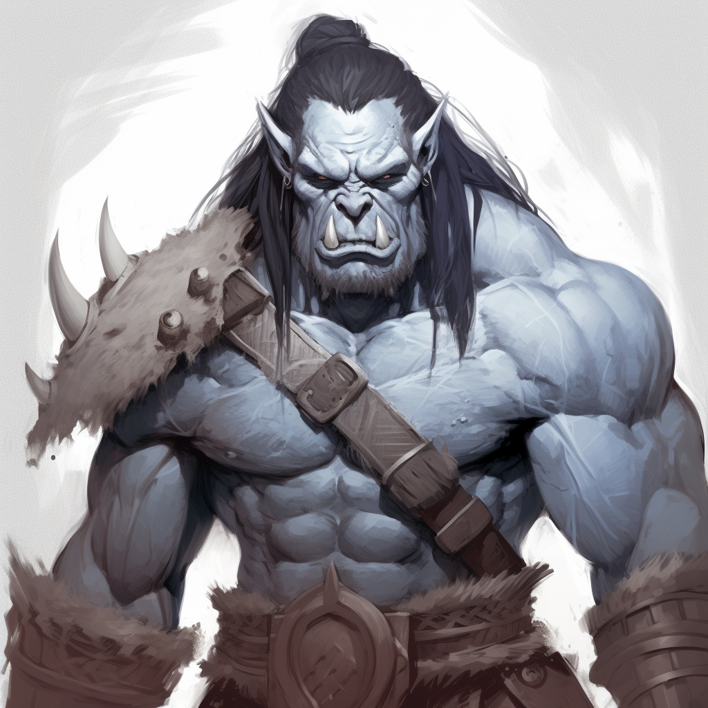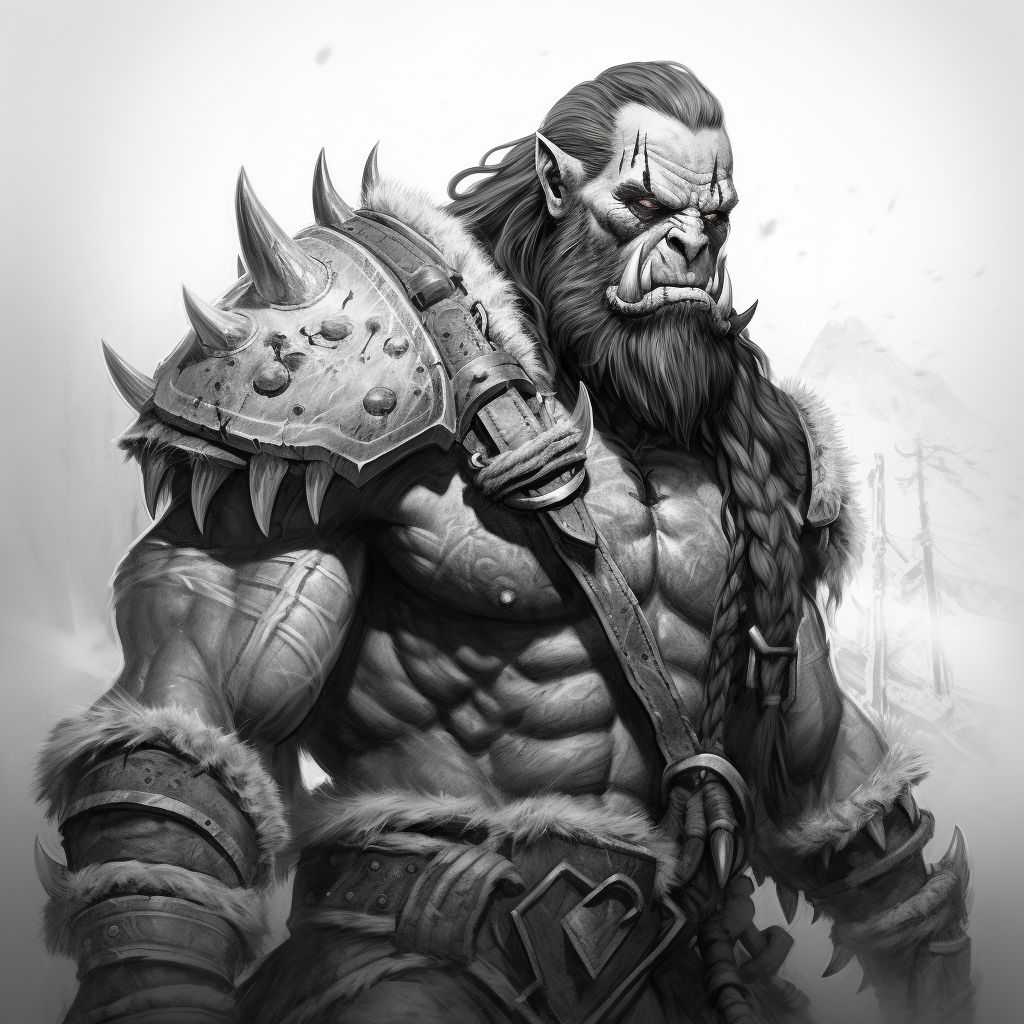 Drogath is a highly intelligent and empathetic orc, known for his strategic mind and his ability to read others’ emotions. He is a natural leader, respected and admired by his fellow Frostwolves for his wisdom and his courage.