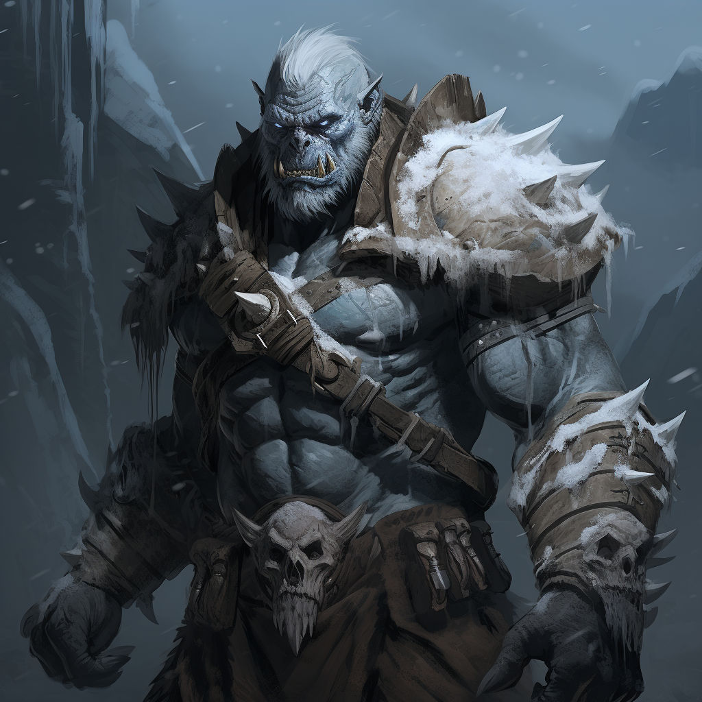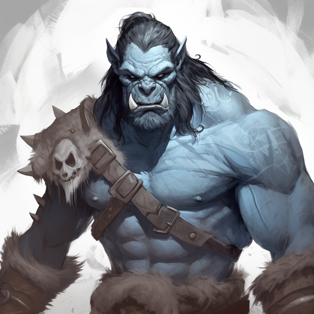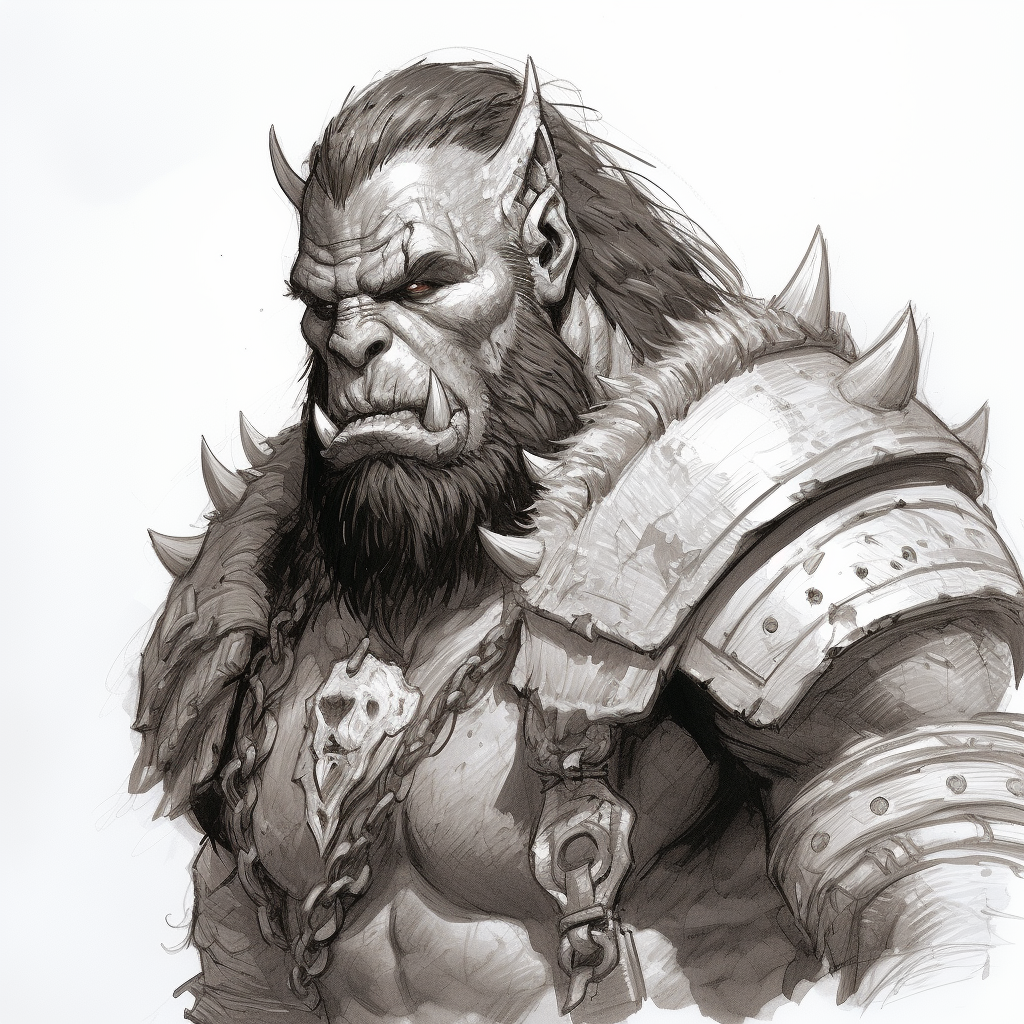 Drogath is a highly intelligent and empathetic orc, known for his strategic mind and his ability to read others’ emotions. He is a natural leader, respected and admired by his fellow Frostwolves for his wisdom and his courage.